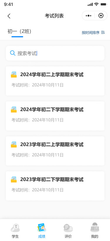 查看學(xué)生成績支持兩種模式:按考試查看允許查看學(xué)生在特定考試中的各科成績(包括總分和平均分);