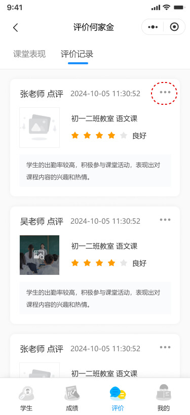 支持查看、修改、刪除學(xué)生的評價。