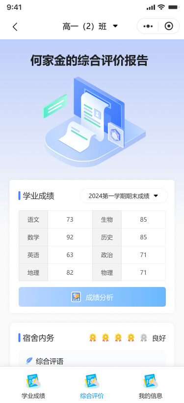 支持查看學(xué)生的綜合評價報(bào)告。