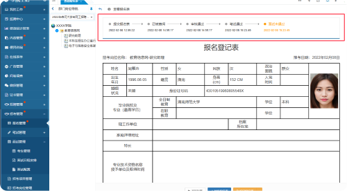 支持對報(bào)名表已通過審核(進(jìn)入筆試流程)的考生做專門的筆試管理。
