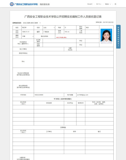 事業(yè)單位招考的報名表通常具有特定格式,與常規(guī)招聘簡歷差異顯著??紤]到招考負(fù)責(zé)人和相關(guān)領(lǐng)導(dǎo)已習(xí)慣紙質(zhì)報名表的樣式,我們特別設(shè)計了高度仿真的報名表填寫和查看界面,確保用戶體驗(yàn)的一致性。