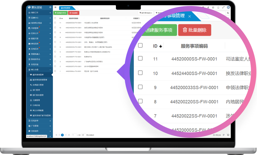 服務(wù)事項(xiàng)管理模塊功能全面且靈活,提供了豐富的操作選項(xiàng)以滿足不同管理需求。