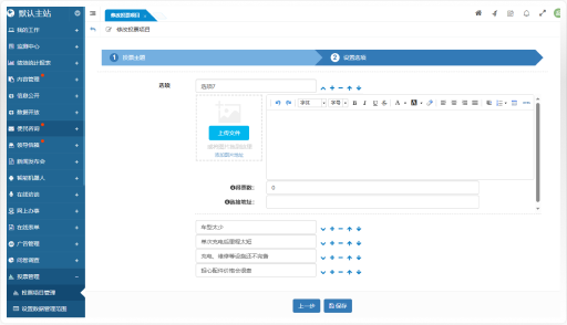 支持配置平臺/支持配置平臺/站點的投票列表頁、內(nèi)容頁、結(jié)果頁等頁面的默認模板,并設(shè)置文件上傳等配置參數(shù)。
