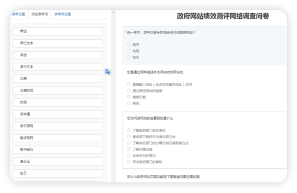 表單項支持單選 、多選、單行文本、多行文