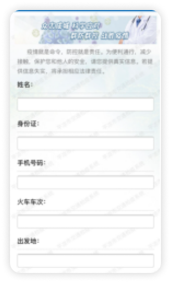 義表單應(yīng)用。例如在火車站檢查點面向乘客的自助檢疫