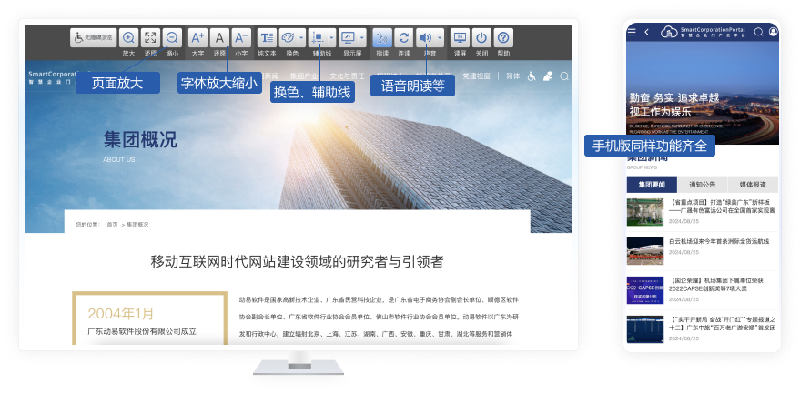 SmartCorporationPortal 是動易基于 WebFuture 全媒體發(fā)布平臺,為滿足大型國企、央企、集團(tuán)型企業(yè)的網(wǎng)站群集約化建設(shè)、信創(chuàng)適配、移動適配、全媒體發(fā)布和監(jiān)測、無障礙改造和適老化建設(shè)等需求而量身定制的整套解決方案。
