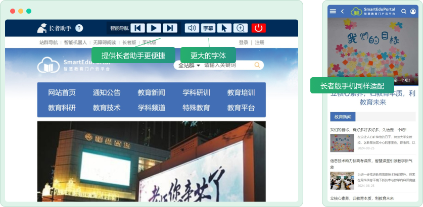 內(nèi)置了無障礙訪問系統(tǒng)和長者助手,專門提供了長者版模板,讓老年人、功能障礙人士等特殊訪問對(duì)象也可以獲得最佳的訪問體驗(yàn)。認(rèn)真對(duì)照無障礙和適老化方面的國家規(guī)范、評(píng)測和認(rèn)證標(biāo)準(zhǔn)對(duì)頁面模板進(jìn)行了全面優(yōu)化,以保證符合有關(guān)國家規(guī)范和標(biāo)準(zhǔn)。