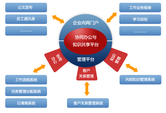 動(dòng)易協(xié)同辦公與知識(shí)共享平臺(tái)由協(xié)同辦公平臺(tái)、知識(shí)管理平臺(tái)兩大部份構(gòu)成,涵蓋企業(yè)工作流管理、任務(wù)分配管理、日清表管理、客戶關(guān)系管理、內(nèi)部知識(shí)門(mén)戶等應(yīng)用,將知識(shí)管理與應(yīng)用平臺(tái)、管理和協(xié)作平臺(tái)、溝通平臺(tái)集于一身,有效解決信息孤島、應(yīng)用孤島和資源孤島問(wèn)題,打破企業(yè)管理的各種屏障,讓企業(yè)的人、財(cái)、物、信息、流程等資源集中在統(tǒng)一的平臺(tái)上進(jìn)行管理,并實(shí)現(xiàn)它們之間的緊密鏈接和高效協(xié)作,從而為企業(yè)建立一個(gè)全面協(xié)同的數(shù)字化管理和運(yùn)營(yíng)環(huán)境。