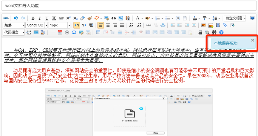 全新架構(gòu)的動(dòng)易SiteAzure 在內(nèi)容編輯時(shí),系統(tǒng)會(huì)自動(dòng)、定時(shí)將文檔臨時(shí)保存在本地,可以有效的防止突然斷網(wǎng),瀏覽器崩潰所造成的內(nèi)容丟失。
