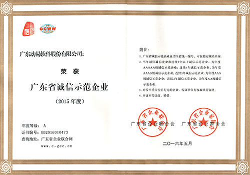 動易軟件榮獲“廣東省誠信企業(yè)”榮譽稱號
