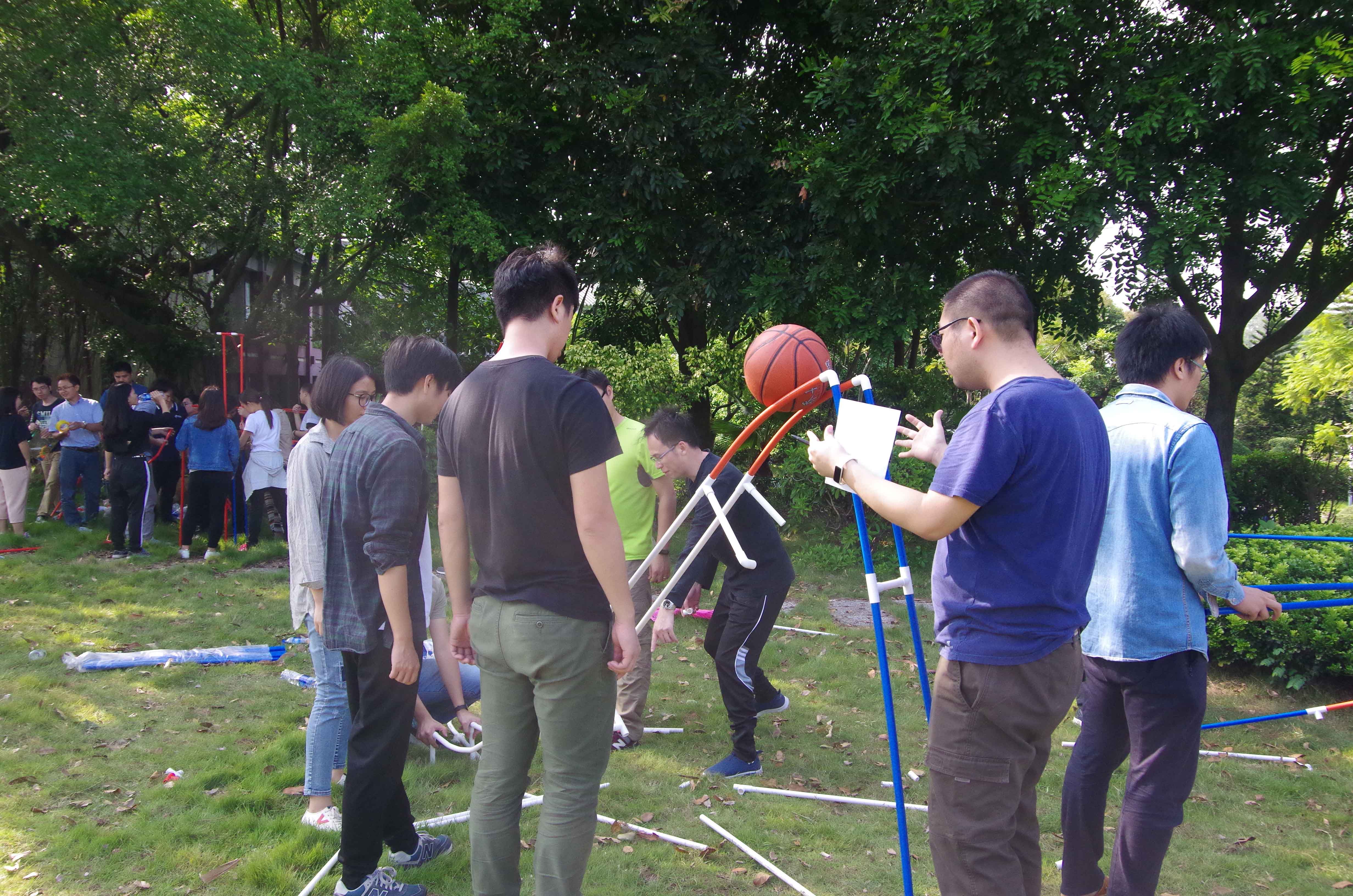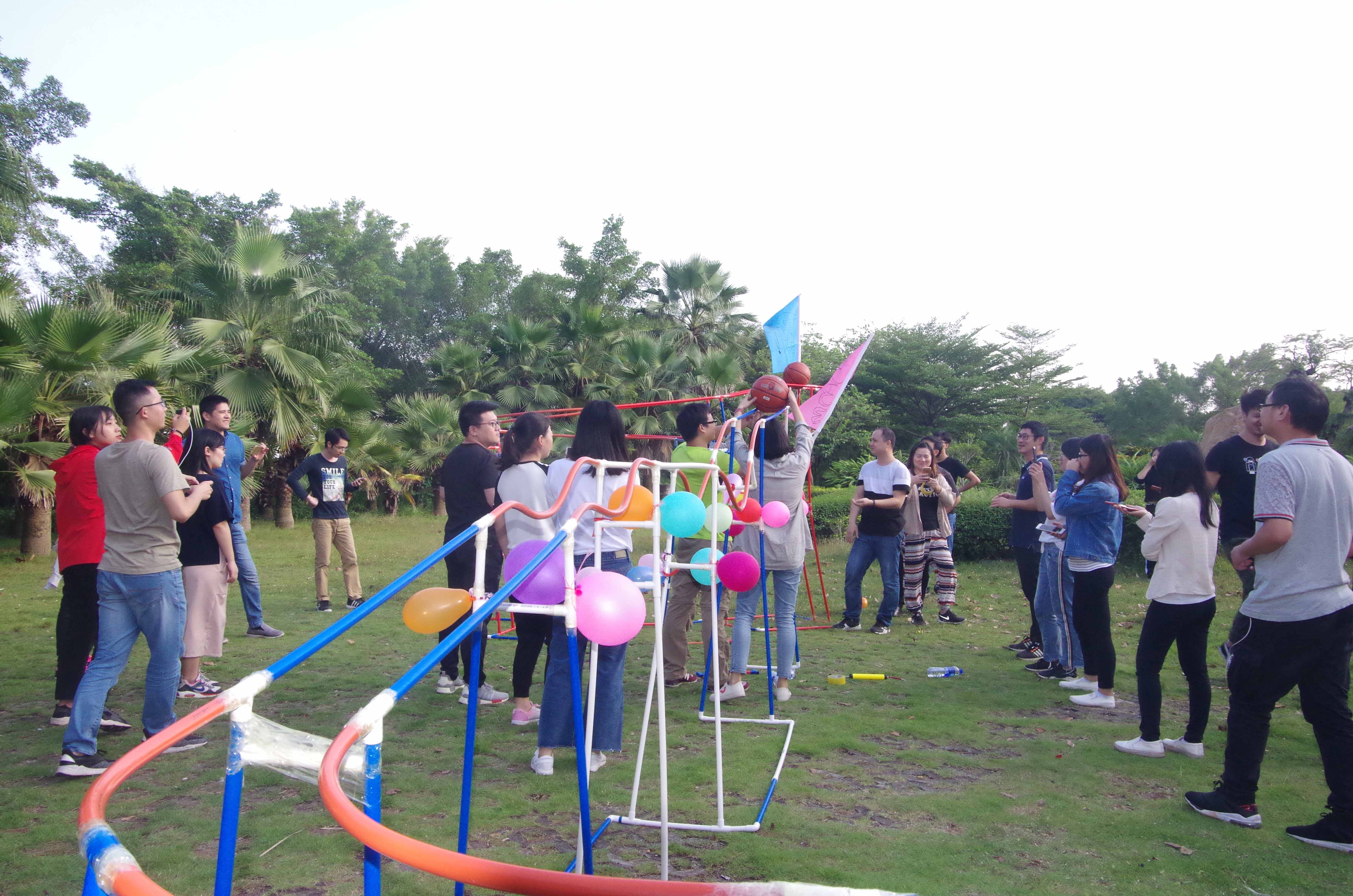 活動中團隊成員進行了美夢成真氣球床、花樣作死拍照、中國好舌頭、任性的“T”字板等一系列團隊訓練項目,最后進行設計和建造了令人興奮和極具創(chuàng)意的過山車。建造過山車的過程包括獲取資源、小組任務、小組成果檢驗、匯總區(qū)域性大團隊目標、成果分享、大團隊目標檢驗。各隊隊員集思廣益,團結協(xié)作,隊員之間相互配合、相互鼓勵,不斷挑戰(zhàn)自我、突破自我,共同分享成功的喜悅和比拼的激情,充分展現(xiàn)了團隊的力量。