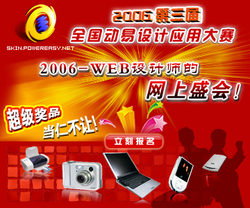 [8月10日訊]如果你是網(wǎng)頁設計高手,如果你是網(wǎng)絡創(chuàng)業(yè)者,又或者你是互聯(lián)網(wǎng)愛好者--即刻登錄以下網(wǎng)址:http://skin.powereasy.net,驚喜大獎等你拿!