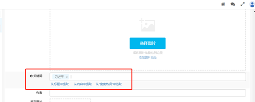 為了操作方便,系統(tǒng)還提供了三種方式來自動提取關(guān)鍵詞:從標(biāo)題中提取、從內(nèi)容中提取、從“搜索熱詞中選取”。