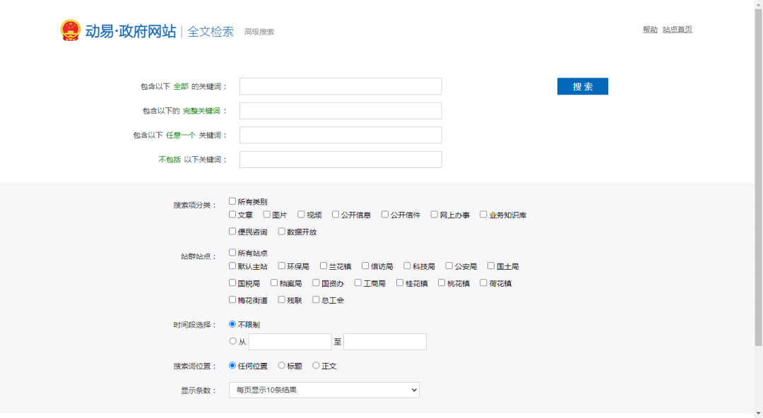 支持指定搜索項(xiàng)、指定站點(diǎn)、指定時(shí)間段、指定搜索位置(標(biāo)題/內(nèi)容),指定每頁(yè)顯示結(jié)果數(shù)。