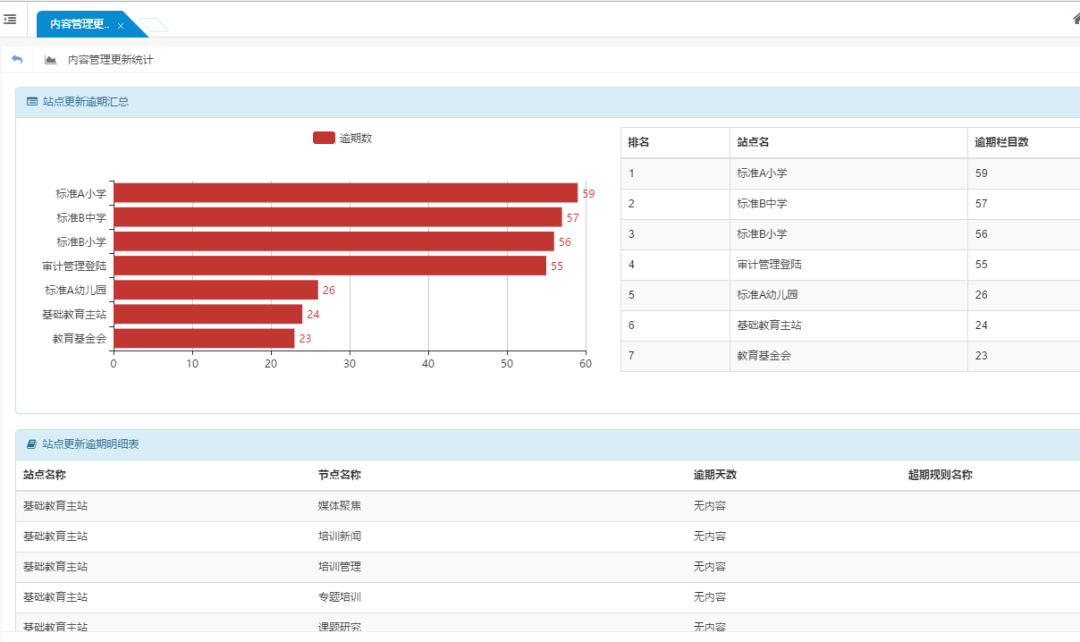 內(nèi)容更新預(yù)警具有主動(dòng)提醒功能,系統(tǒng)會(huì)自動(dòng)根據(jù)規(guī)則的周期判別信息是否及時(shí)更新,然后提醒相關(guān)管理員。