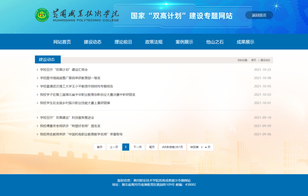 建設雙高成果展示平臺建設,是學校雙高建設,提升信息化水平立項項目。專題平臺全面回顧盤點、展示學院“雙高”建設的發(fā)展成果,展現學院風貌,彰顯學院人才培養(yǎng)質量特色。