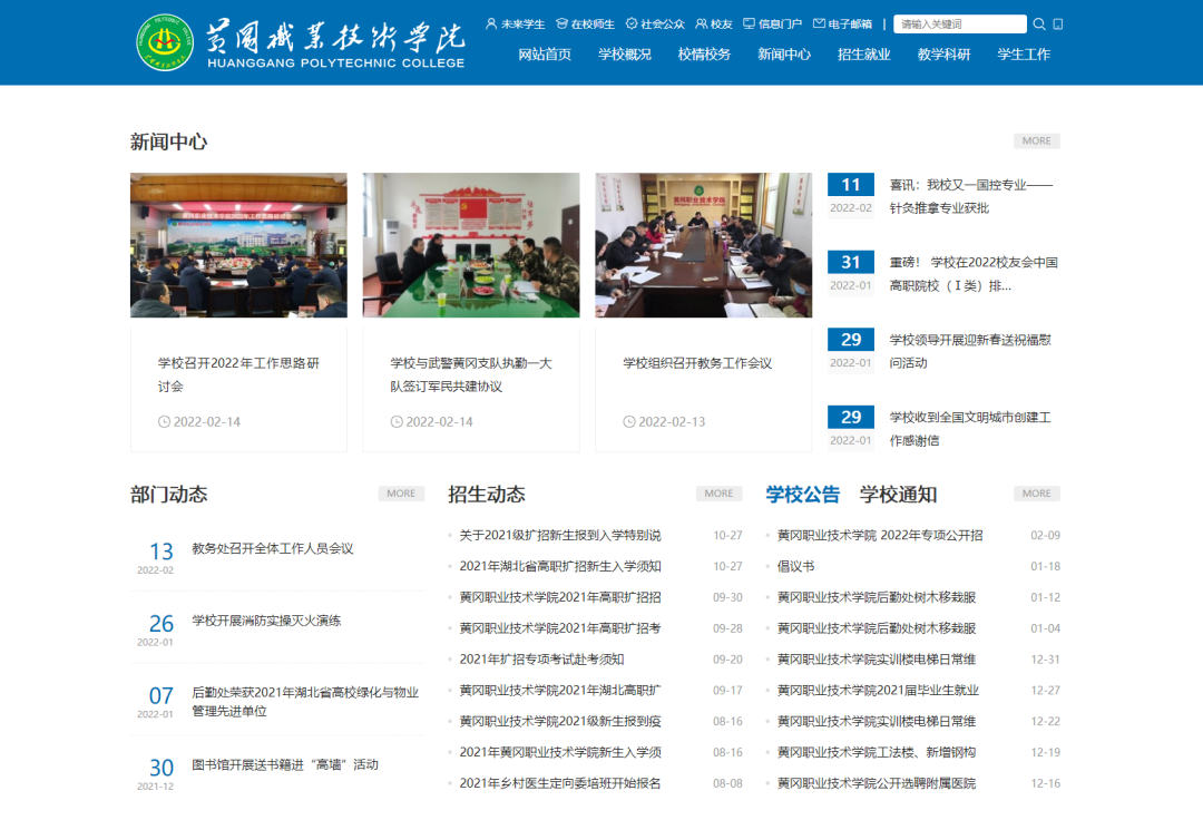 黃岡職業(yè)技術學院使用動易全媒體集約化平臺建設解決方案,完成了黃岡職業(yè)技術學院集約化平臺建設、一體化服務集成、全媒體矩陣管理等工作,彰顯角度更高、視野更廣、功能更強、界面更美四大特色,構建數據融合、互通共享、管理和服務業(yè)務系統(tǒng)集成的一體化信息服務平臺,促進信息技術與職業(yè)教育教學的深度融合,提升學校管理服務水平、治理能力以及信息化水平,為學院“雙高計劃”建設助力。