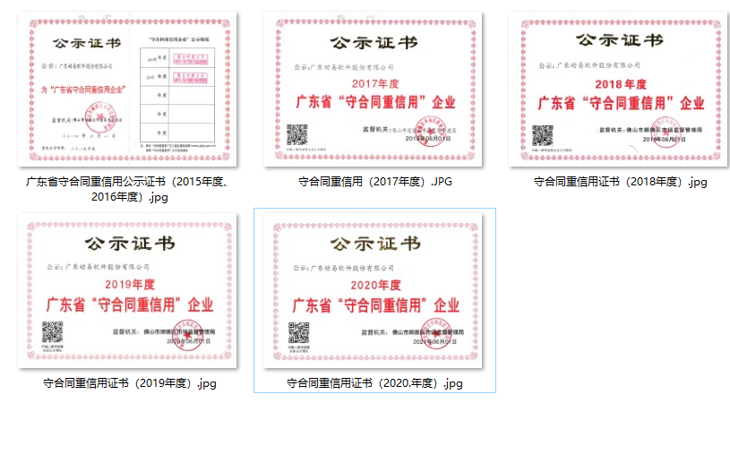 動易公司連續(xù)七年獲得【廣東省守合同重信用企業(yè)】、連續(xù)三年獲得【中國企業(yè)信用等級(AAA)證書】、獲得【廣東誠信示范企業(yè)】等榮譽(yù)資質(zhì),是消費(fèi)者值得信賴的放心企業(yè)。