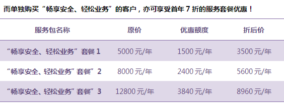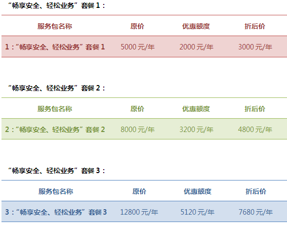 服務(wù)項(xiàng)目 | 暢享安全 輕松業(yè)務(wù) 套餐1 | 暢享安全 輕松業(yè)務(wù) 套餐2 | 暢享安全 輕松業(yè)務(wù) 套餐3 |