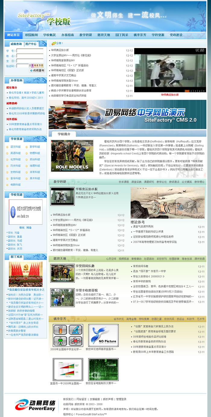 SiteFactory 學(xué)校版應(yīng)用演示:http://school.powereasy.net
