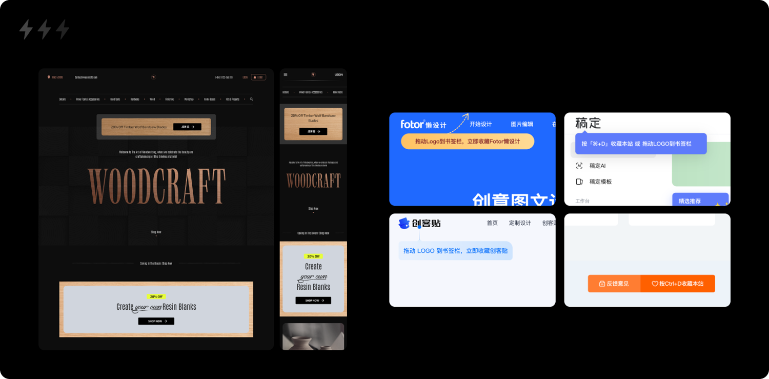 2. 收藏引導:在PC瀏覽器和手機系統(tǒng)中,用戶可以通過“添加到閱讀列表、書簽或主屏幕”等功能來收藏頁面。微信小程序也有“添加到我的小程序”的功能,這些收藏方式能顯著提升用戶再次查找和打開頁面的速度。因此,設計師可以在頁面中進行適當?shù)氖詹匾龑?,尤其針對工具型產品官網。例如,提供“收藏本頁”或“添加到主屏幕”的按鈕,并進行簡單的提示。這不僅有助于提高用戶的回訪率,還能增強用戶的粘性。