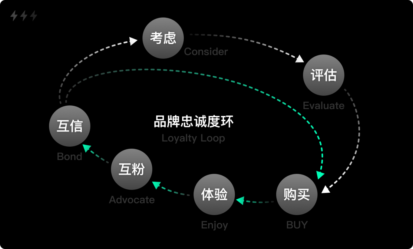 3. 忠誠路徑:對于已經購買過的用戶,他們在產生需求后,通過搜索或其他方式快速訪問官網,在已有信任感的驅使下,大概率會直接采取行動,跳過注意、興趣和決策階段。