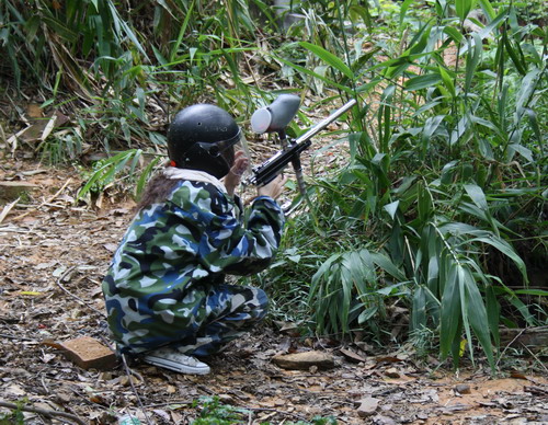 野戰(zhàn)教練隨后講了一大堆注意事項(xiàng)和槍的使用方法,我們各領(lǐng)了一把槍就上山了。天氣熱的很,大家個(gè)個(gè)都全副武裝,還用一條白毛巾緊緊地扎住脖子――白毛巾是投降時(shí)用的,這時(shí)候的作用是保護(hù)脖子。每個(gè)人頭上都戴了一個(gè)沉重的頭盔,勉強(qiáng)爬了一小半山路,就已經(jīng)累的氣喘吁吁了。山上樹不是很多,零零散散地又布置了一些木板、廢輪胎什么的算作掩護(hù),每個(gè)人都找到一個(gè)自認(rèn)為安全的位置掩護(hù)起來,可以看到綠方的人在遠(yuǎn)遠(yuǎn)的山上,于是不管三七二十一,大家開始對(duì)射起來。不過我挺納悶的是,為什么我們是守的一方反而在山下面,而綠方是攻的一方,卻到了我們的上方,貌似調(diào)了個(gè)個(gè)兒。因?yàn)榻叹氃谑孪榷谶^,野戰(zhàn)用的BB彈雖然不是真的,但殺傷力還是挺大的,為了安全在十米之內(nèi)不能開火,所以大家都遠(yuǎn)遠(yuǎn)地看著對(duì)方亂射一通,一會(huì)兒功夫,不少人的三十發(fā)子彈就打了個(gè)精光,只好揮舞著白毛巾下山去了。我躲在一塊木板后面,不知道是槍本身就有毛病還是我不會(huì)用,手里的槍每打出一顆子彈之后就扣不動(dòng)了,非得等上好長一段時(shí)間才能再打一下,弄得我進(jìn)退不得。眼看著男同胞們大部分都下山了,這場戰(zhàn)爭也遠(yuǎn)遠(yuǎn)沒有我想象中的激烈,想想以我這種水平,槍在我手里也只是浪費(fèi)子彈,索性和我身邊的志浩換了一把,拿著他的空槍就下山了,心里期盼著他能代替我多殲滅幾個(gè)“敵人”。下山后沒多久,這場戰(zhàn)爭就結(jié)束了,教練宣布了結(jié)果,8:11,藍(lán)方勝,哈哈,在我看來這場戰(zhàn)爭我們贏的有些莫名其妙,不知道這其中有沒有我那把槍的功勞呢。