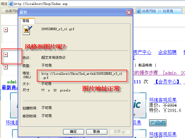近日接到一客戶咨詢,說本機在導(dǎo)入了新的模板方案測試時,風(fēng)格圖片顯示不出來。這種問題一般很簡單,所以通過QQ遠程進行查看。他是用的本機地址進行測試,網(wǎng)站為默認網(wǎng)站,以的地址進行訪問,頁面中的鏈接都沒問題,根據(jù)經(jīng)驗判斷可能是是下幾個原因: