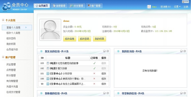 2.會(huì)員中心支持個(gè)性化首頁(yè)