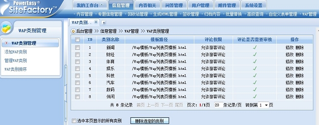 ?。ㄎ澹?nbsp;WAP類別支持添加、刪除、排序;