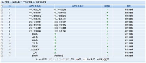 系統(tǒng)提供辦事分類管理功能,能夠添加辦事分類,可設(shè)置辦事分類名稱、辦事指南模板、流程指示模板、文檔下載模板、網(wǎng)上申報模板、常見問題模板、咨詢建議模板等,也可以對辦事分類進行修改和刪除等。