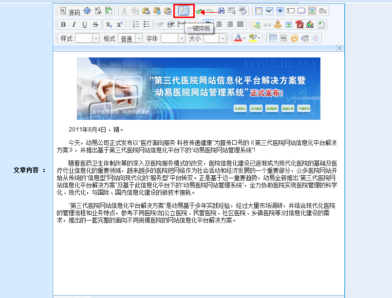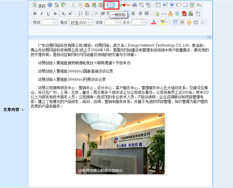 文章內(nèi)容一鍵排版功能——動易5.1版新特性