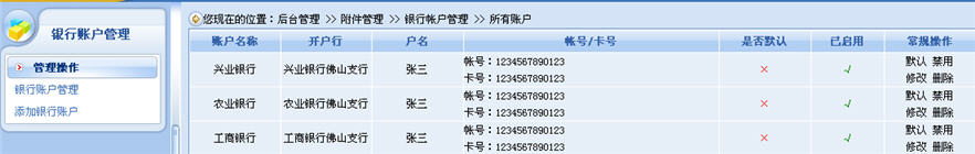 對(duì)于商家來(lái)說(shuō),銀行帳戶的管理意義還不僅僅是如此,銀行帳戶的管理還涉及到了商家對(duì)不同的銀行帳戶的匯入?yún)R出資金進(jìn)行統(tǒng)計(jì)的功能。