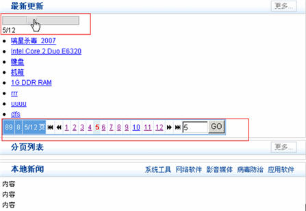 確定后,跟著保存模板,切換到前臺,我們可以看到在前臺的最新更新里,我們已經(jīng)添加了一個帶有分頁效果的內(nèi)容列表。