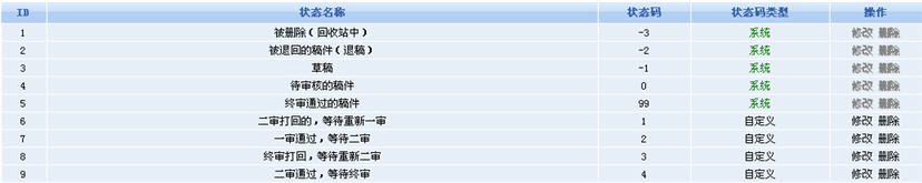 稿件狀態(tài)碼很顯然的是用于顯示稿件當前的處理狀態(tài)的:是待審核的稿件,還是已經(jīng)通過審核的稿件?這樣便使得用戶可以清楚的了解到所投稿件正處在什么審核狀態(tài),對于網(wǎng)站編輯來說,也可以提醒自己是否有未處理的稿件,并讓稿件按既定的流程順序進入下一個審核環(huán)節(jié)。