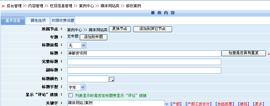 點(diǎn)擊上圖紅色框中“進(jìn)入后臺(tái)編輯”的按鈕后,我們即可直接進(jìn)入后臺(tái)修改界面: