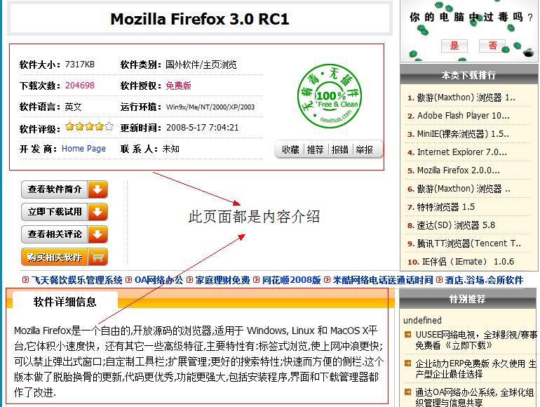 新的生成方式是這樣的:所有的內(nèi)容頁面都可以生成靜態(tài)頁面,只有當(dāng)用戶需要查看包含權(quán)限限制或者收費(fèi)內(nèi)容時,才會鏈接到動態(tài)頁面進(jìn)行權(quán)限的判斷。舉個例子:很多專業(yè)的下載站點(diǎn)都采用了此種方式,如華軍、天空等。當(dāng)我們打開某個軟件的介紹頁面后(實(shí)際就是內(nèi)容頁),在頁面中可以查看到此軟件的各種介紹、截圖等等(圖1)。當(dāng)我們確定需要下載后才需要點(diǎn)擊下載鏈接進(jìn)行權(quán)限的判斷(圖2),這樣就大大降低了數(shù)據(jù)庫訪問需求,同時提升了搜索引擎的收錄。