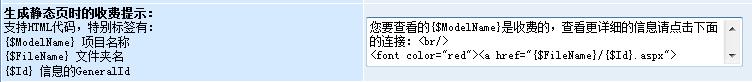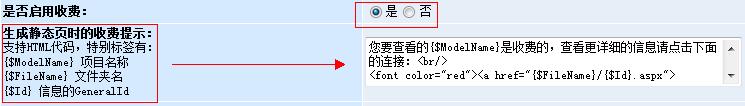 特別需要推薦一下的是動態(tài)頁面的收費(fèi)提示信息是可以在后臺修改的哦!我們先進(jìn)入”模型管理“,打開”文章模型“,在配置中我們就可以對”收費(fèi)提示“進(jìn)行修改了,如圖: