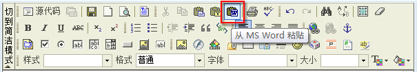 一、首先登錄后臺,來到文章添加界面,在文章內(nèi)容編輯器中切換成高級模式,點擊“從 MS Word 粘貼”功能按鈕。