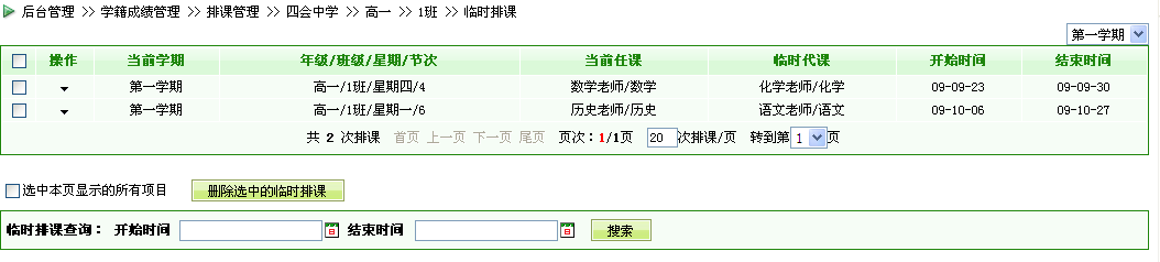 在后臺某個班級的課程表中,我們可以點擊所需要進行調課的節(jié)次進行臨時排課: