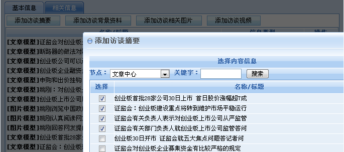 前臺(tái)展示界面提供了豐富的內(nèi)容展示元素,包括:訪談?lì)A(yù)告(主題、時(shí)間、嘉賓等)、訪談?wù)?、背景資料、訪談詳細(xì)內(nèi)容等;同時(shí),在訪談結(jié)束之后,可以對(duì)訪談的內(nèi)容進(jìn)行圖片編輯、視頻編輯等。
