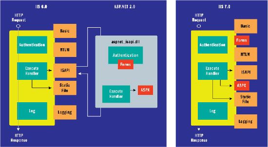 IIS7的主要部分已被重新編寫,重寫的大部分都涉及到新的集成模式,該模式允許.NET模組可以在IIS管道的任何階段掛接進(jìn)來。然而,當(dāng)我們讓ASP.NET運(yùn)行于這一集成模式時(shí),就會(huì)曝露出一些無法兼容的改變。